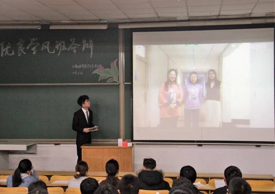 官网公示3天。正式进行阶段,各班代表答辩者以ppt的形式在每人5分钟(附视频为7分钟)的有限时间里,从班级的班级建设、思想建设、学习情况、竞赛活动等各个方面进行展示,因妙语连珠的口才及光彩夺目的成就获得一阵阵的掌声。最后,评委老师们对答辩者们的自信与能力给予充分肯定。