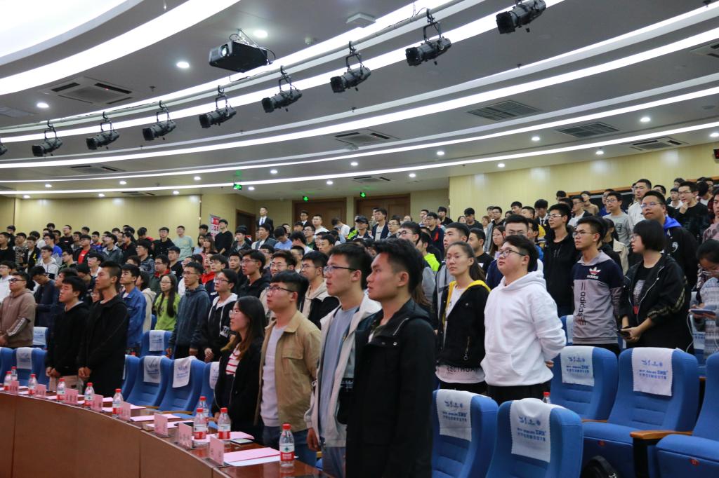 70年披荆斩棘,70年风雨兼程,我们一路走来,前方道路依旧漫长。首先我们一同欣赏歌曲《我的祖国》。并一起奏唱团歌,实践话归来收获分享报告会也由此拉开了帷幕。
