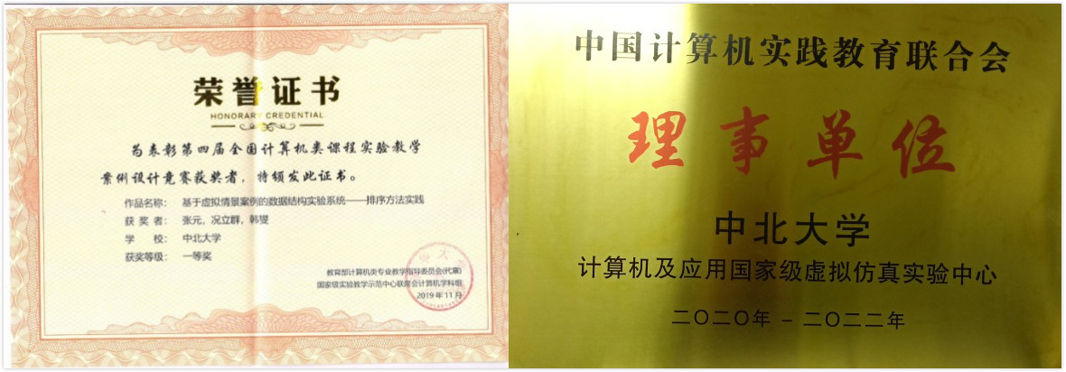 教师张元、况立群和韩燮研发的虚拟仿真实验项目《基于虚拟情景案例的数据结构实验系统——排序方法实践》获得第四届全国计算机类课程实验教学案例设计大赛一等奖。本赛事由教育部计算机类专业教指委和国家级实验教学示范中心联席会计算机学科组共同主办,旨在推进探究性、创新性实验教学改革,提升高校教师的实验教学水平,促进先进实验教学理念、内容、技术和方法的广泛应用与共享。来自全国各大高校的近30家国家级计算机实验教学示范中心参与了本届赛事,提交了70项实验案例,最终通过先网评后会评的方式评出奖项。计算机及应用虚拟仿真实验教学中心副主任况立群受邀做了专题报告,介绍了实验中心的平台建设情况,获奖实验案例的改革思路、建设内容和实施方法,并从专业人才培养角度对实验案例在策划、实施、评价的实践经验进行了分享。