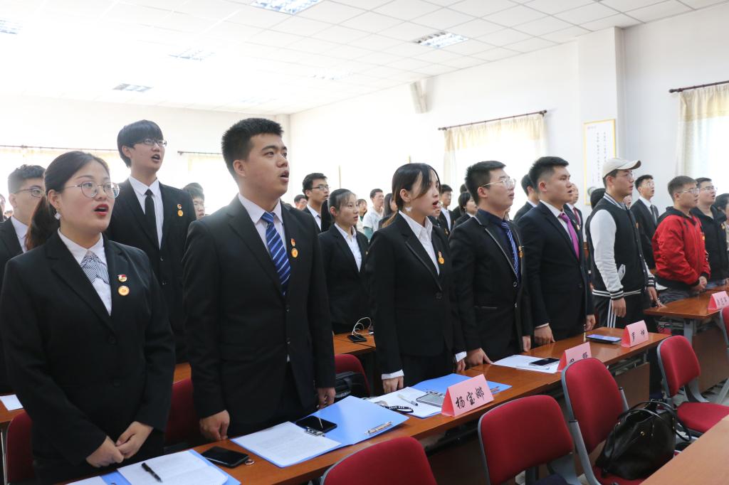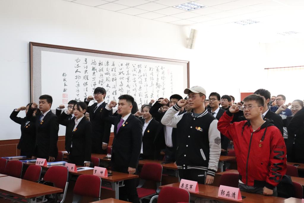 授徽仪式完毕后,新一届干部代表发言。会长白云凤同学回顾了自己的工作经历,讲述了个人成长感悟,言语间流露出的是匆匆岁月里个人与团队的成长,同时白云凤同学也提出今年的工作重心主要在内部建设和理论学习上。团支书王杰同学提出研习会的改革需要全时段推进、全方位协调,既要有制度的创新,也要有思想水平的提高,并希望所有会员撸起袖子加油干,以饱满的热情投入到研习会的工作中,实现自己的价值和意义。副会长杨宝娜同学表示研习会的成长由全体会员见证,一路的坎坷更加磨练了、坚定了全体会员们的信念,所有会员都是研习会的奠基人,都在为研习会做出自己的贡献。同时也具体讲述了自己未来在研习会的工作计划,帮助大家更好地学习理论知识,提高大家的思想建设水平。