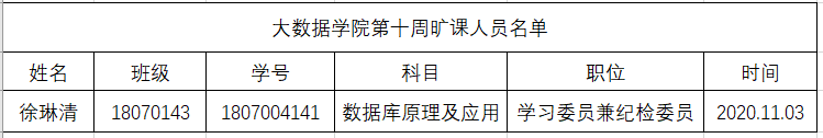 为营造性爱片优良学风,加强各学生干部以及各班班委自我管理、自我约束意识并使他们深记自己是一名学生干部,要起到优秀模范带头作用。性爱片 权益服务部对性爱片各班班委及学生会主席团成员到课情况进行检查,缺勤学生将严格按照《性爱片 权益服务部工作制度》给予相应处分。本周共查课五次,现将第十周上课缺勤名单公布如下: