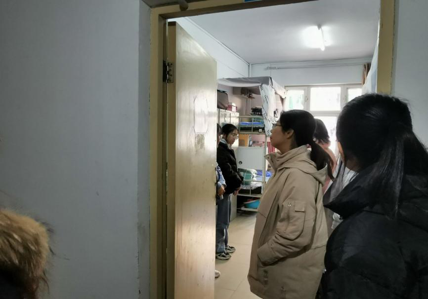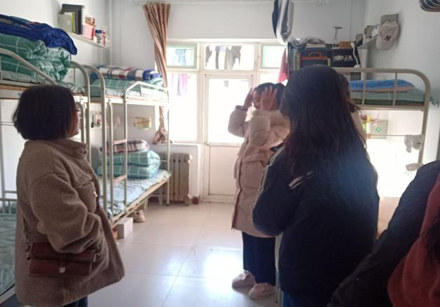 老师们走进学生宿舍检查卫生,充分了解学生生活环境,贴近学生生活,他们用温柔幽默但又不失严厉的话语,表扬卫生环境条件等较优宿舍并指出目前部分宿舍内部存在的问题。叮嘱同学们冬季注意卫生保暖,勤通风,多运动,检查时对每个宿舍都进行了消毒液的喷洒。