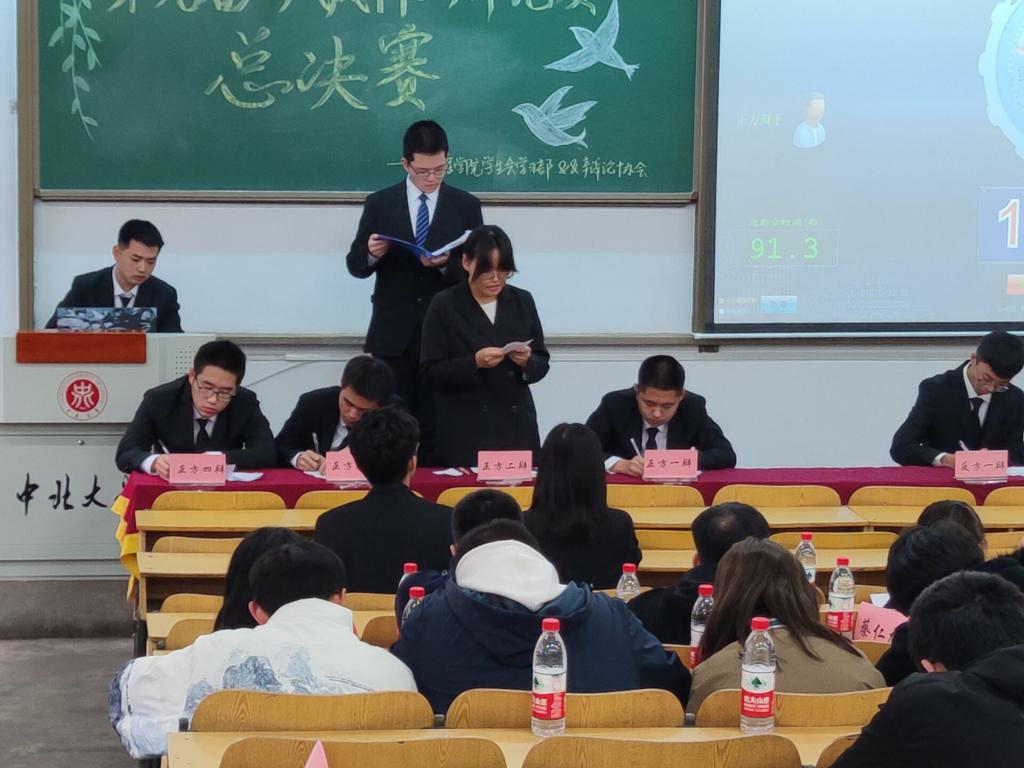 精彩的表演之后,我们的冠亚赛正式开始, 21070401,21070404两班将围绕“现在社会更需要通才还是专才”展开激烈的辩驳。他们各抒己见,在你来我往中将全场的气氛调动起来。随着时间的不断推进,比赛愈发胶着,双方选手都竭尽所能向对手发起一次又一次的进攻,直至比赛的结束。