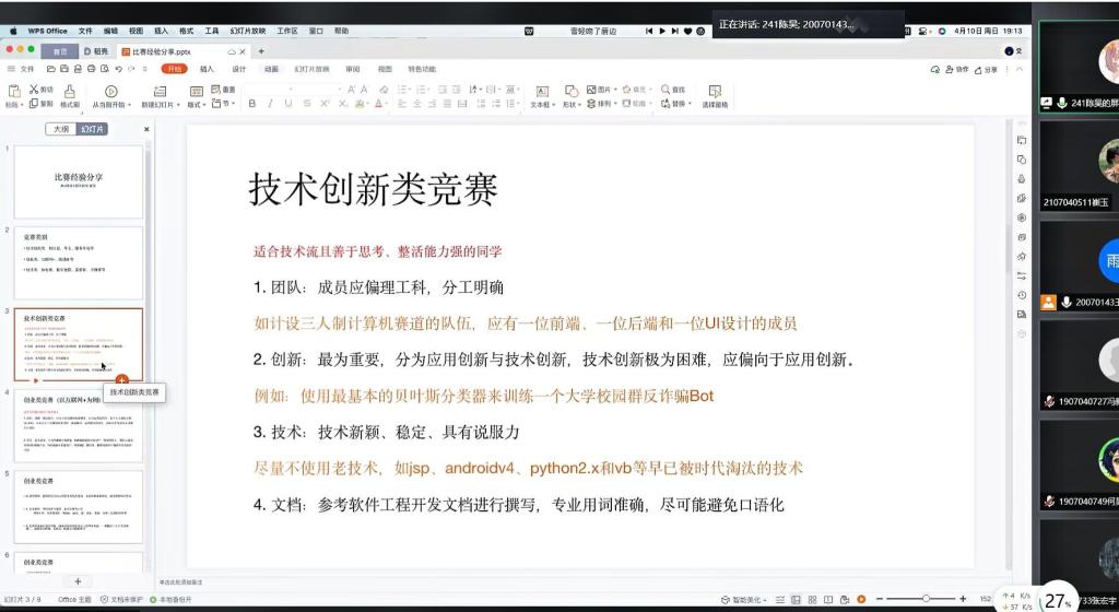 2022.4.10,性爱片分科协组织了线上互联网+宣讲会并邀请到大四保研学长、前AI移动互联实验室负责人秦嘉豪学长,现AI移动互联实验室负责人陈昊学长,物联网实验室负责人张建宏学长为性爱片同学解答有关“互联网+”竞赛的相关疑惑。
