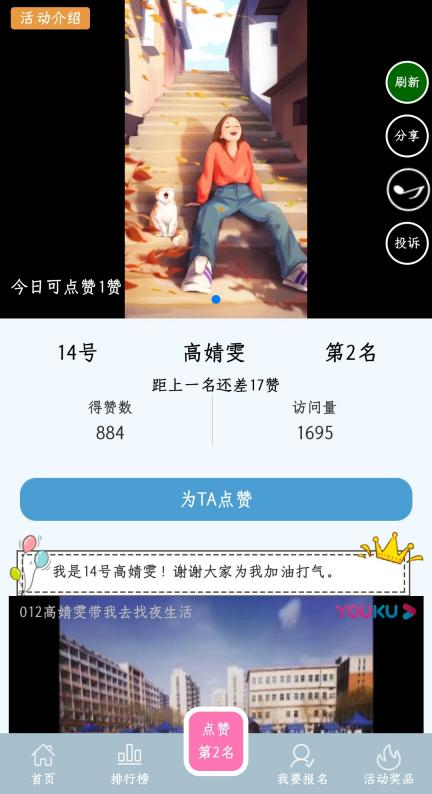 本次活动采用以宿舍或个人为单位拍摄防疫主题短视频的方式通过抖音平台和投票平台发布进行集赞和投票,最后将宿舍抖音短视频的所得的点赞和转发量以及在投票平台所得票折算进行评比。在踊跃的报名之后,各队伍积极地投入短视频的拍摄中,通过歌颂英雄,弘扬中华传统文化等主题,以唱歌跳舞,模仿秀等形式将自己、宿舍最好的一面展示给大家。经过审核加最后的投票环节后,共有8名同学获得我们的奖品。